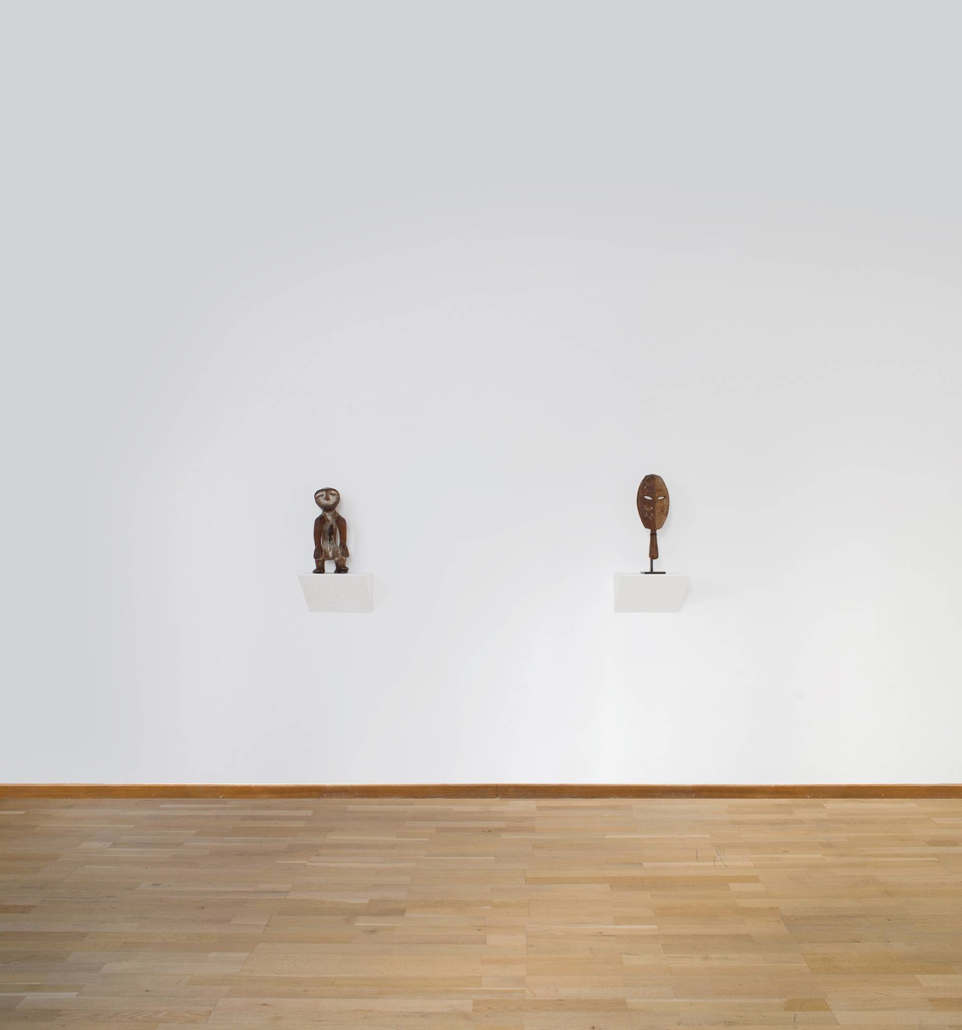Vue de l'exposition. Un ensemble de sculptures Léga.